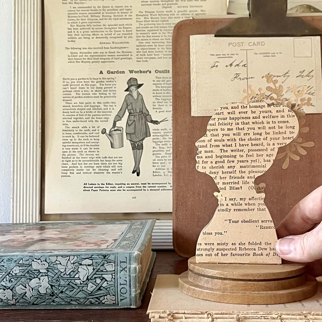 When I make the Secret Vintage Booksafes I try not to waste any of the paper i carve out and re-use it to make these endearing three dimensional book sculptures for the bookish amongst us. They are a delightful addition to bookshelves and mantles and great gifts for the book lovers.