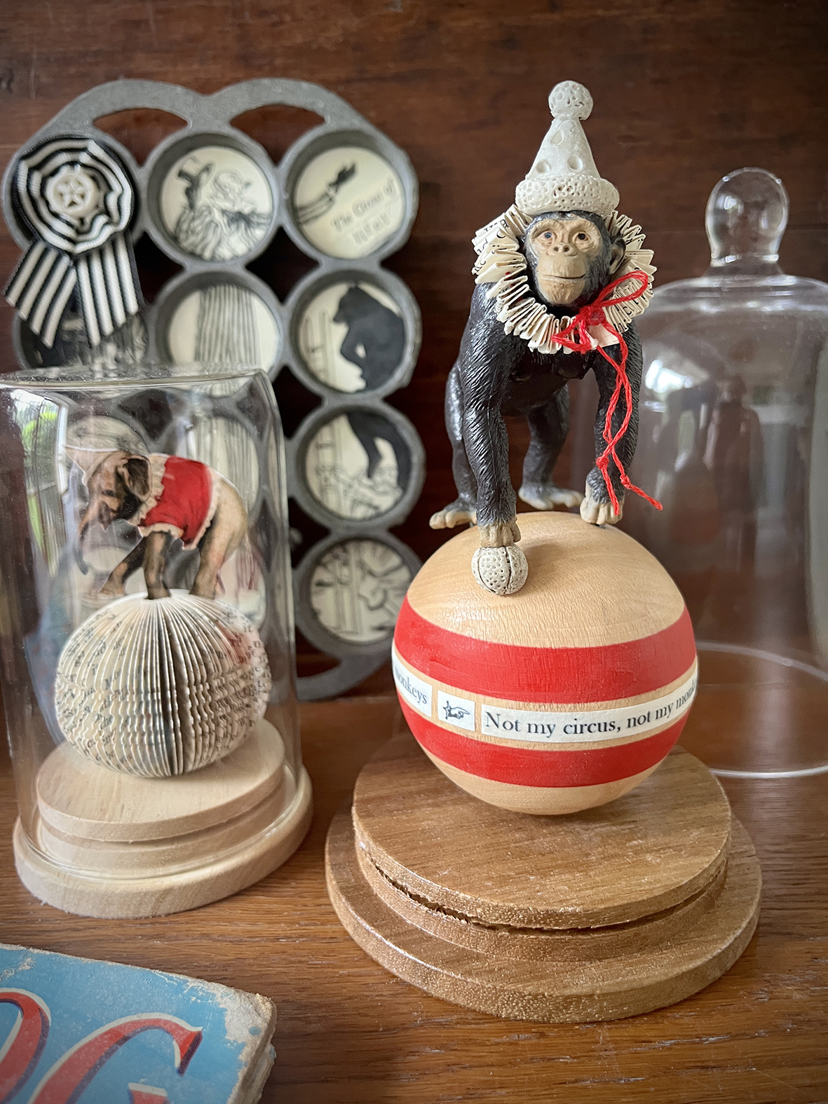 Each illustration is adhered to a disc that is mounted within the half-spheres of the tray. Most illustrations are from the Circus of Adventure by Enid Blyton with a few of my favourite miscellaneous pieces added.