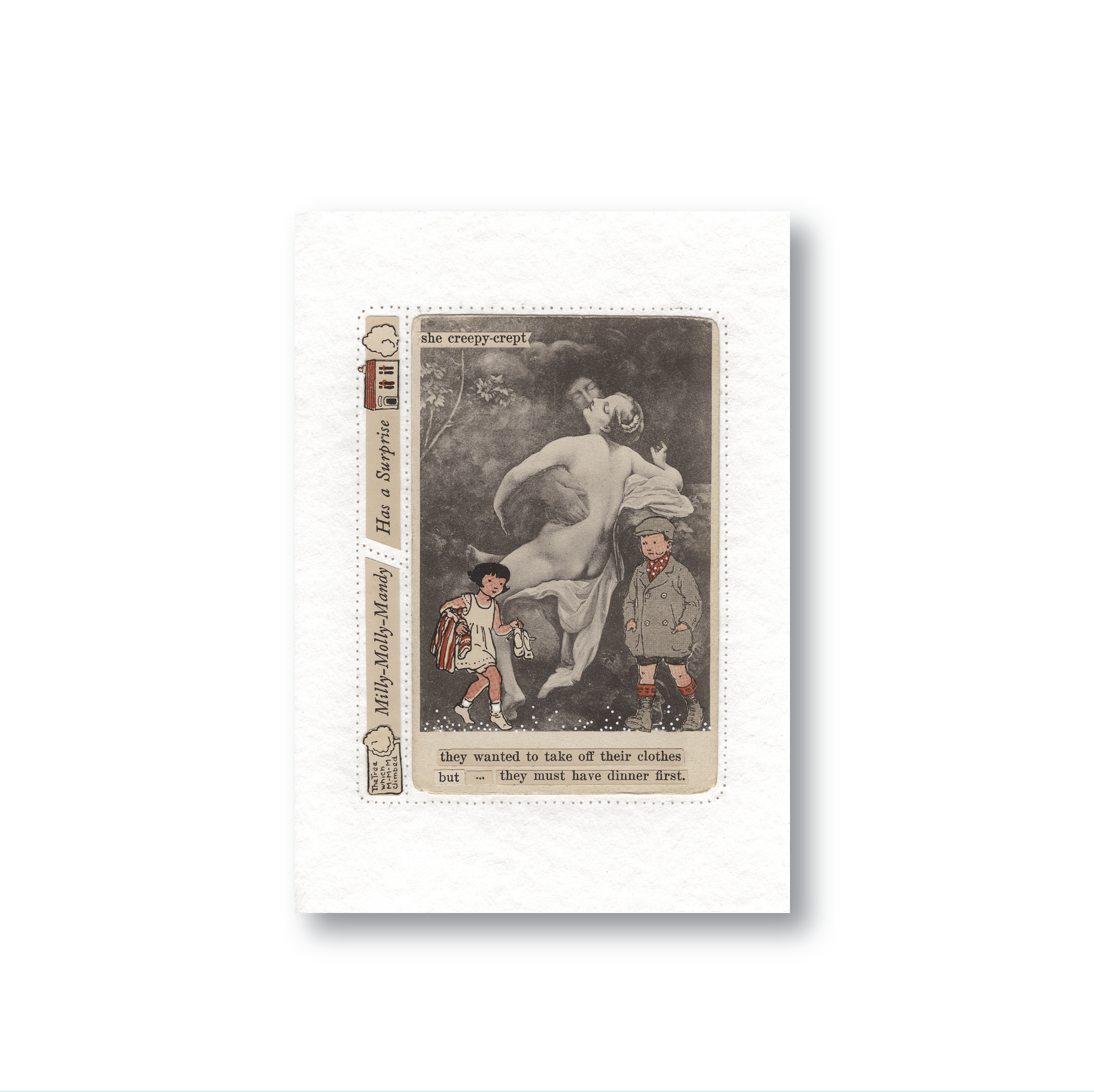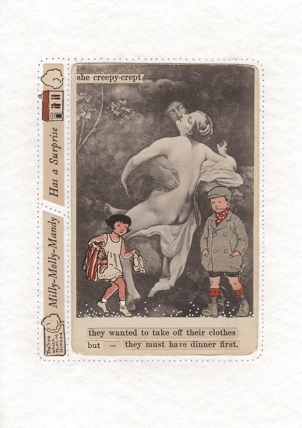 This hilarious original A5 Collage uses a fabulous vintage postcard and text from a 1943 Milly Molly Mandy book by Joyce Lankester Brisley.