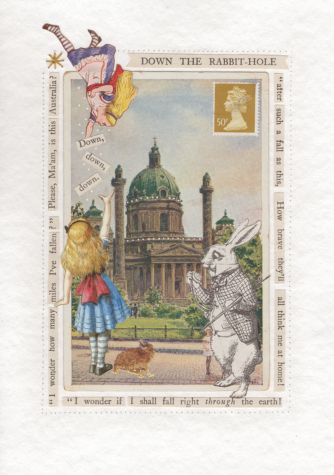 An original collage from Foolhouse’s Postcards from Alice Collection