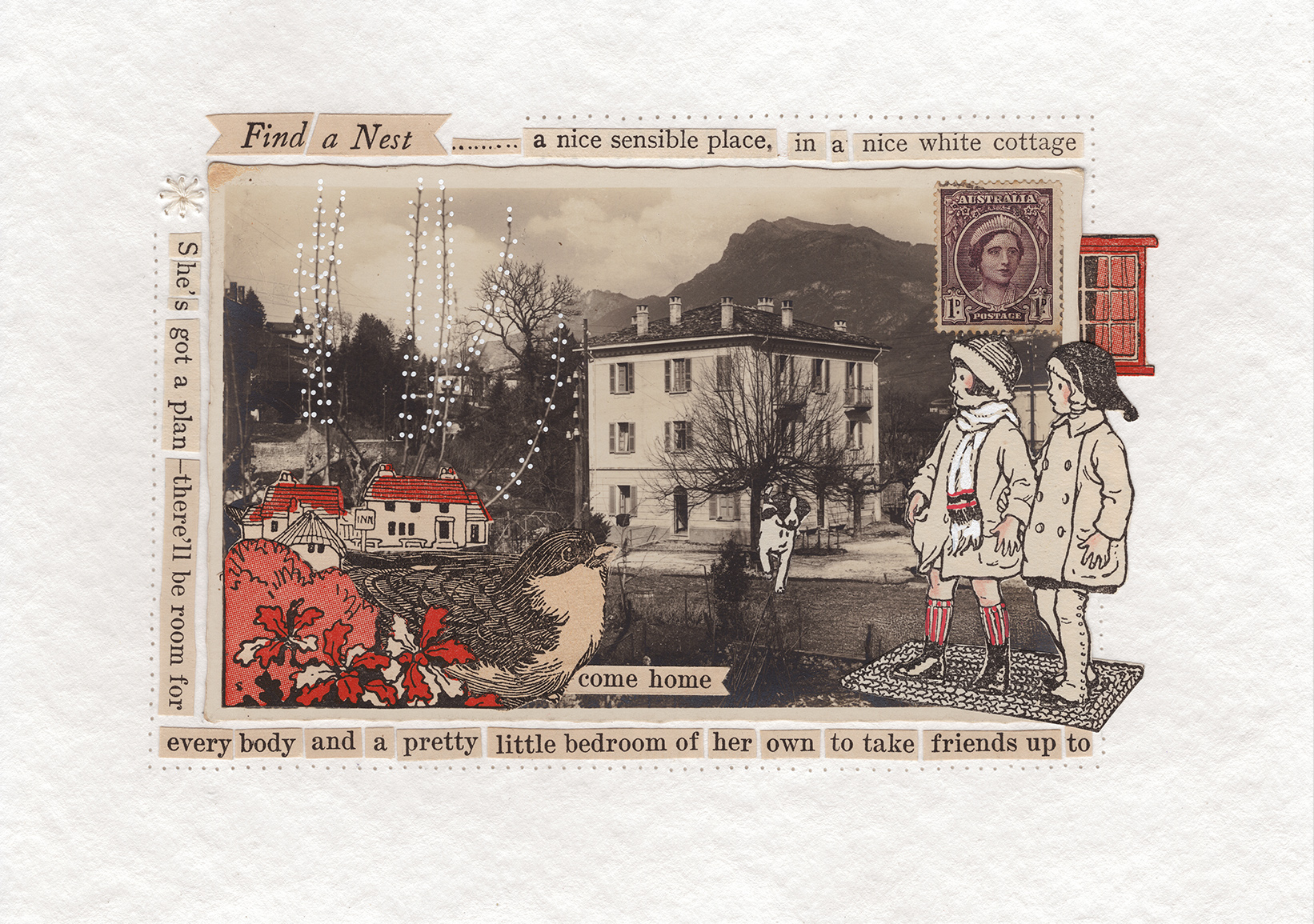 An original collage from Foolhouse’s Vintage Postcard Collection