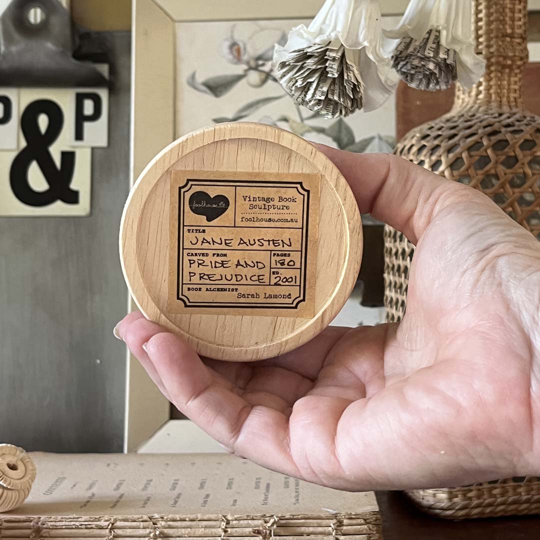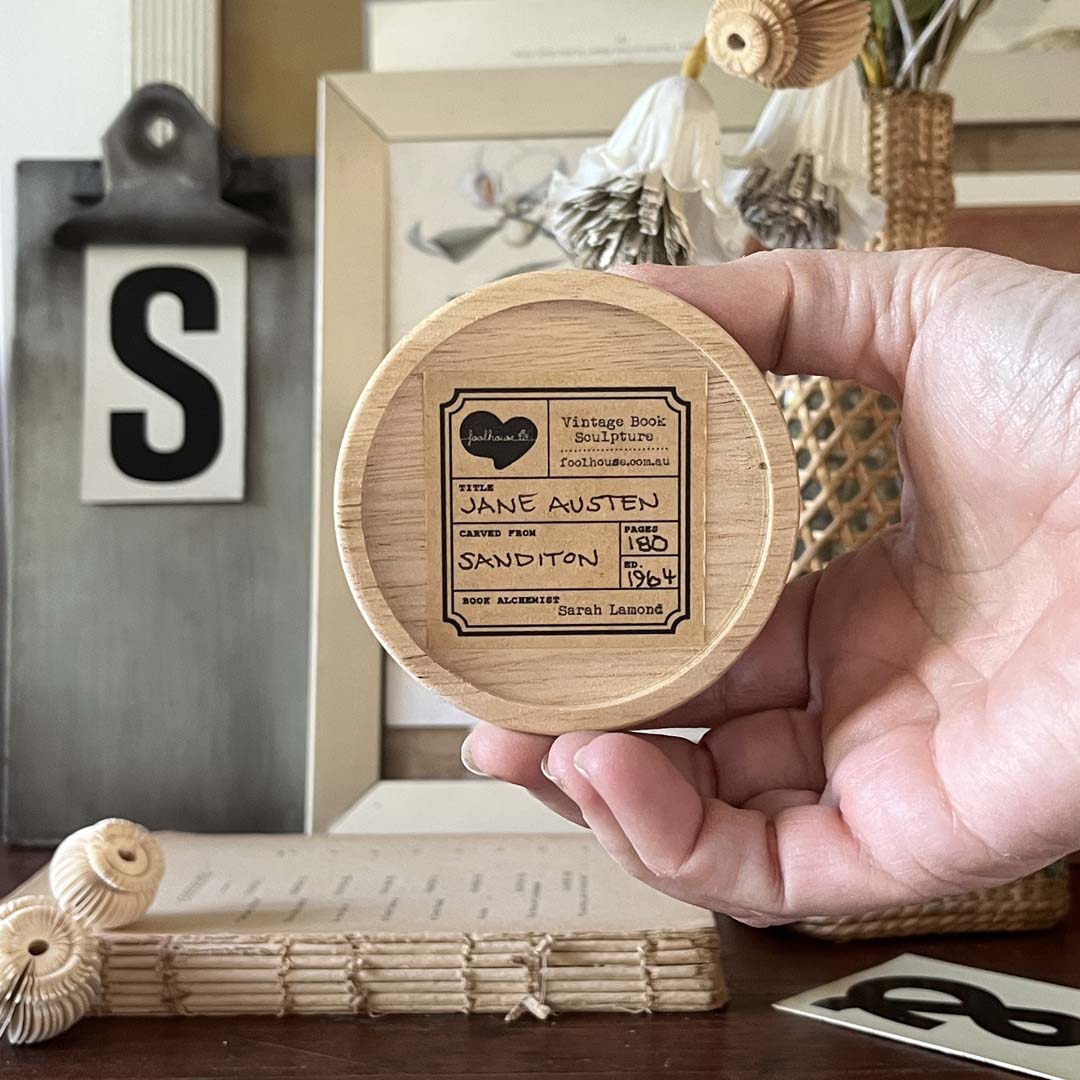 This listing shows the limited edition collection I have carved from different vintage books. Each one turns inside-out a little differently, sometimes the sculpture captures the blank edges and sometimes they are carved through the lettering giving each one an individuality of tones. No single sculpture is alike and will add an unexpected dimensionality to your bookshelf or a lovely gift to the bookish.