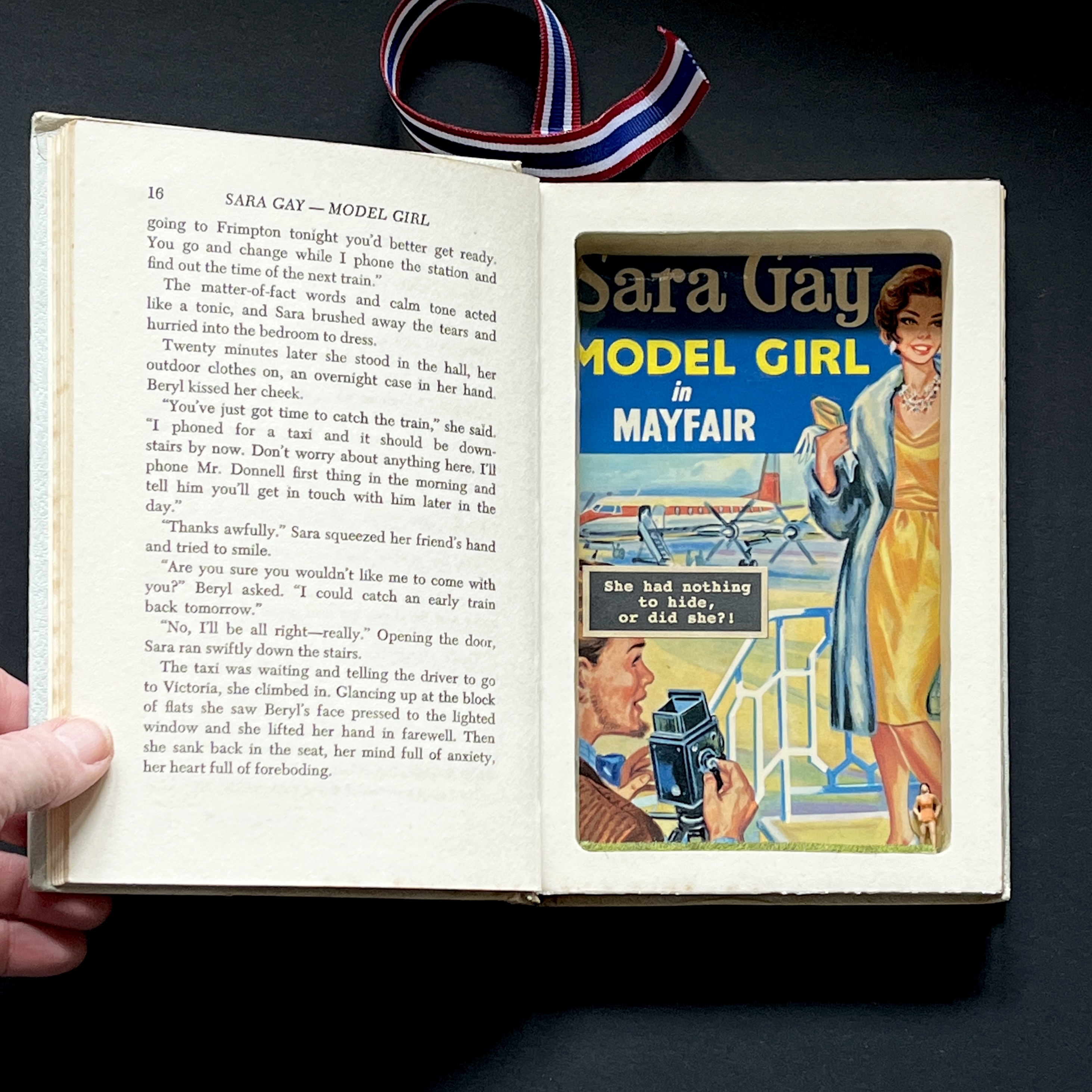 Every Foolhouse booksafe is lovingly carved and glued and enhanced by vintage ribbon bookmarks. Plus a vintage illustration has been specifically chosen to line the secret pocket. The secret message inside is devised by ourselves, inspired by the illustration on show and if well-known – an original quote. There’s even a meadow of faux grass and a wee miniature secret guardian that sneaks up on you and keeps your treasures safe!