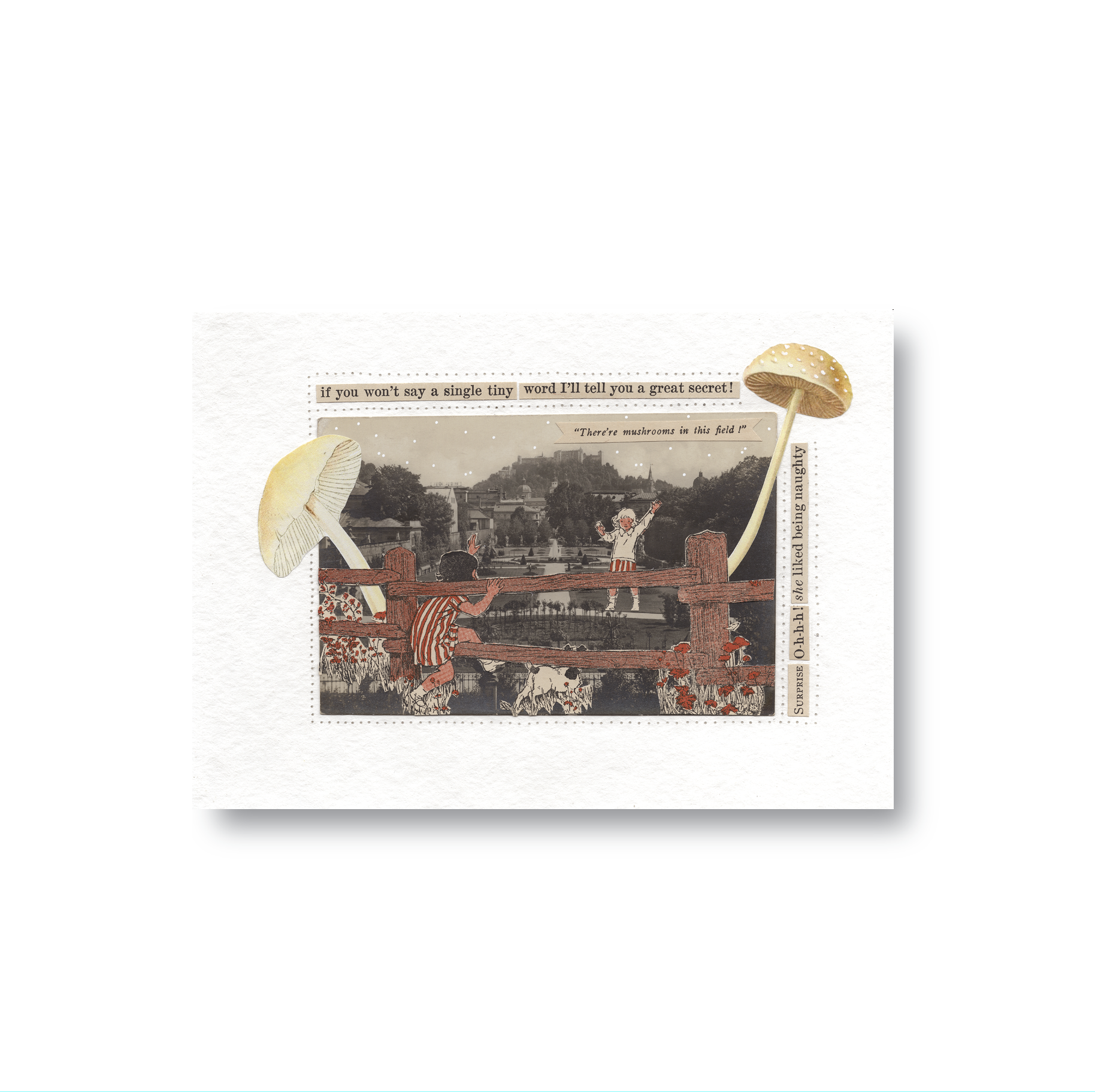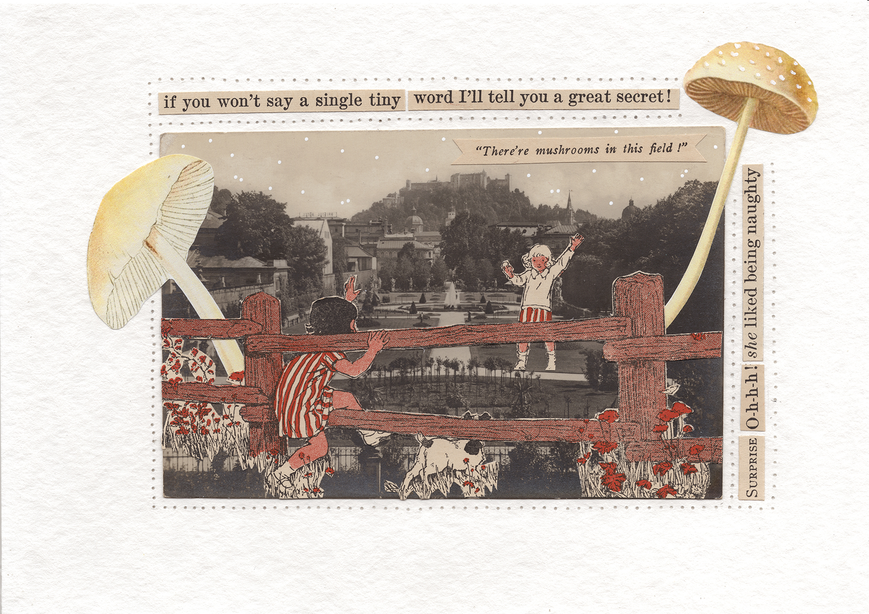 An original collage from Foolhouse’s Vintage Postcard Collection