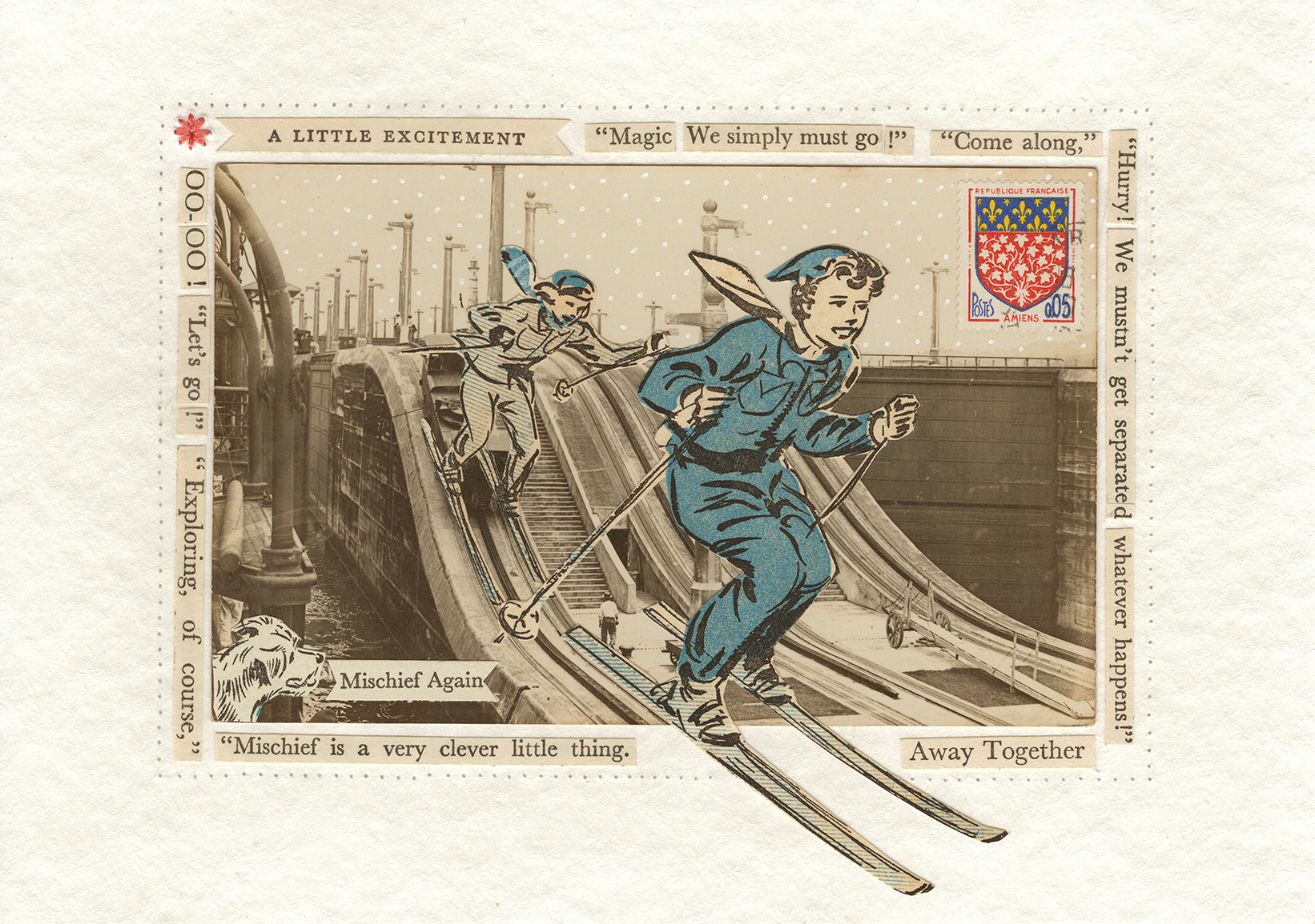 An original collage from Foolhouse’s ‘Postcards from The Famous Five’ Collection