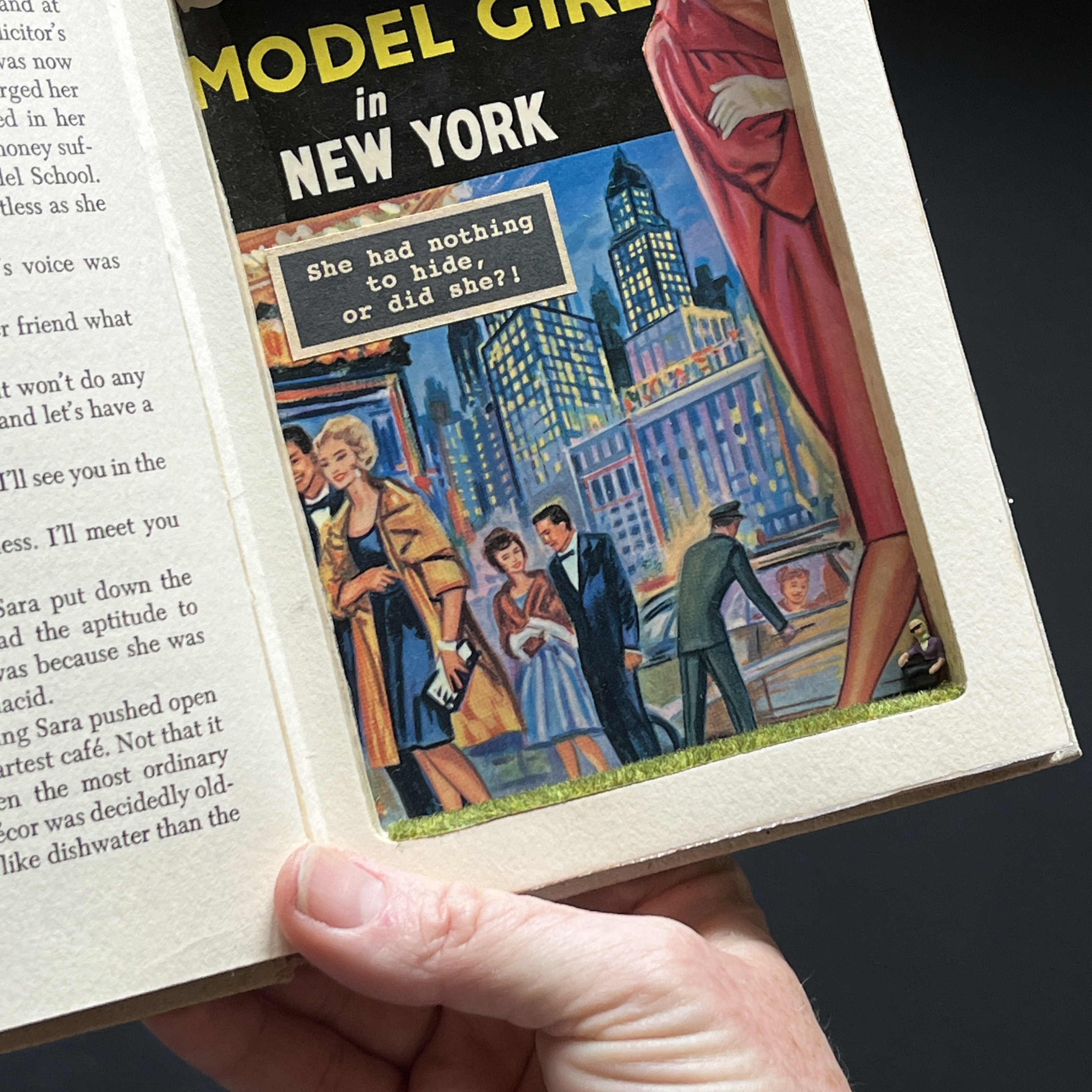 Every Foolhouse booksafe is lovingly carved and glued and enhanced by vintage ribbon bookmarks. Plus a vintage illustration has been specifically chosen to line the secret pocket. The secret message inside is devised by ourselves, inspired by the illustration on show and if well-known – an original quote. There’s even a meadow of faux grass and a wee miniature secret guardian that sneaks up on you and keeps your treasures safe!