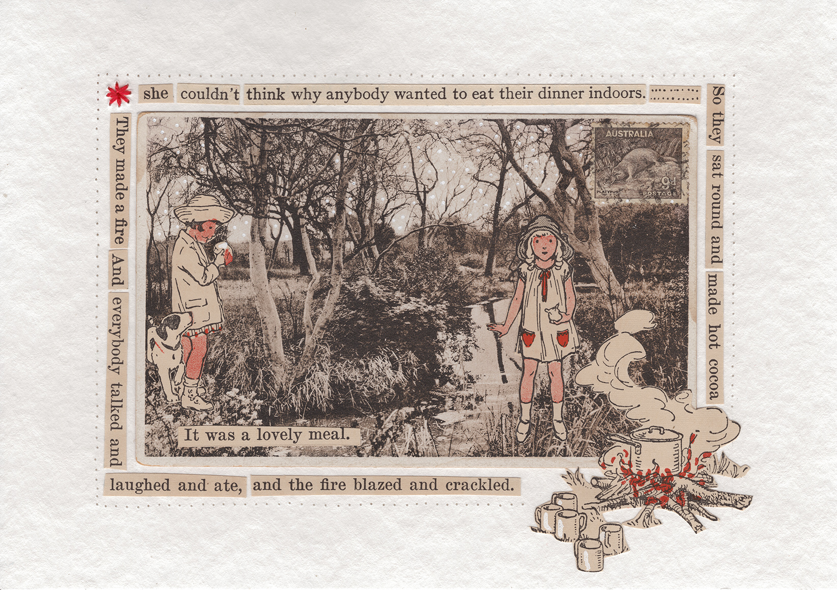 This endearing original A5 Collage uses a fabulous vintage postcard, vintage stamp and text from a 1943 Milly Molly Mandy book by Joyce Lankester Brisley.