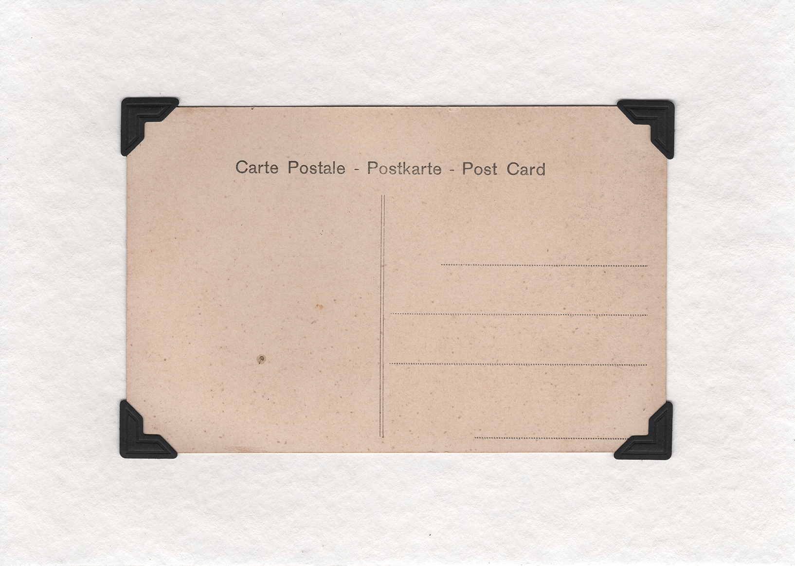 The vintage postcard is set into old photographic corners, so that you are able to remove it and inspect the history that it reveals on the rear side. Some postcards have handwritten letters and some are blank on the back so you are able to construct your very own secret message on it – one that only you will know about or the person you gift it to. How remarkable and surprising will it be when it is discovered unexpectedly!
