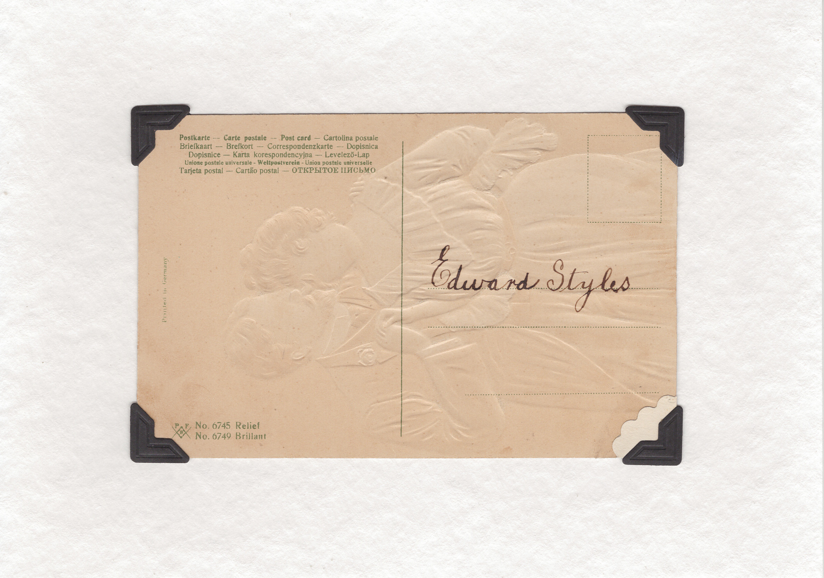 The vintage postcard is set into old photographic corners, so that you are able to remove it and inspect the history that it reveals on the rear side. Some postcards have handwritten letters and some are blank on the back so you are able to construct your very own secret message on it – one that only you will know about or the person you gift it to. How remarkable and surprising will it be when it is discovered unexpectedly!