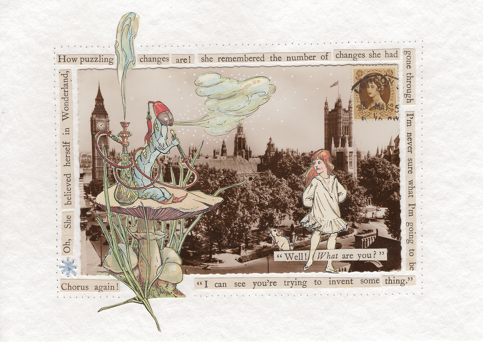 An original collage from Foolhouse’s Postcards from Alice Collection