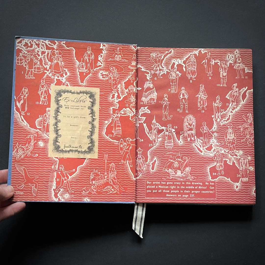 Every rescued Foolhouse booksafe is lovingly carved and glued and enhanced by vintage ribbon bookmarks. Plus a vintage illustration has been specifically chosen to line the secretly shaped pocket and a secret miniature guardian has been hidden in the squirrel’s foot to keep your secrets safe!