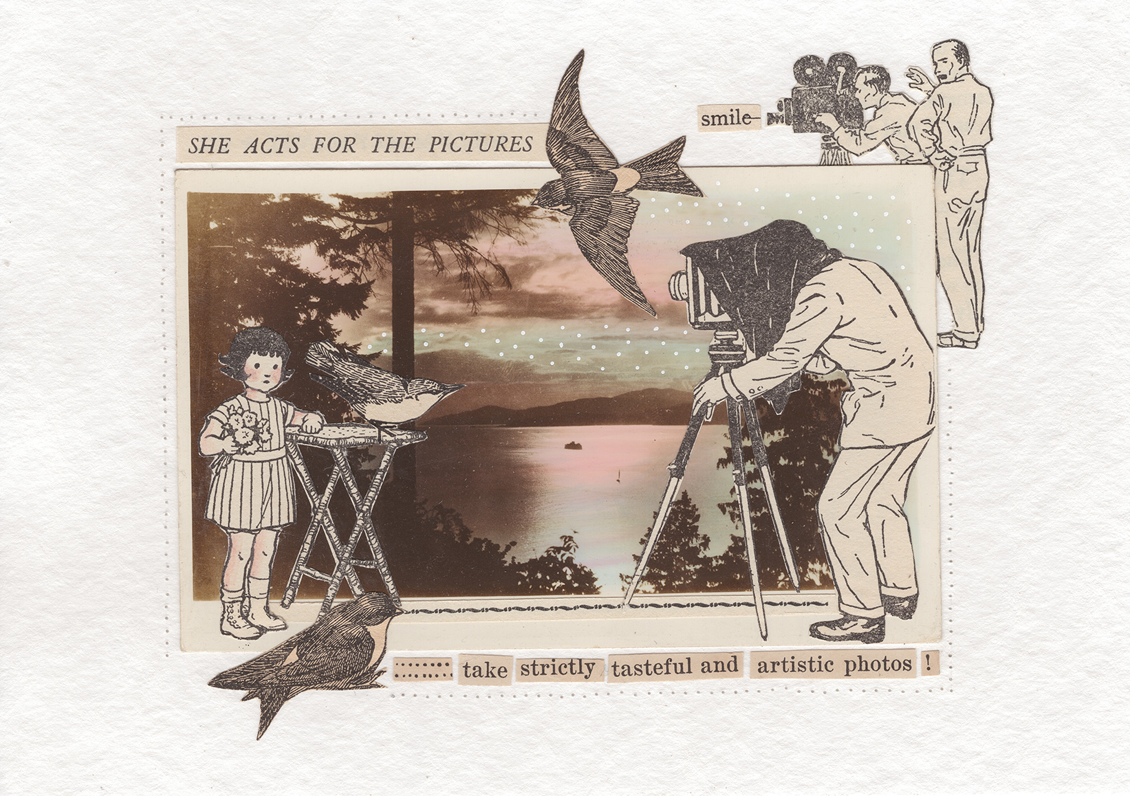 An original collage from Foolhouse’s Vintage Postcard Collection