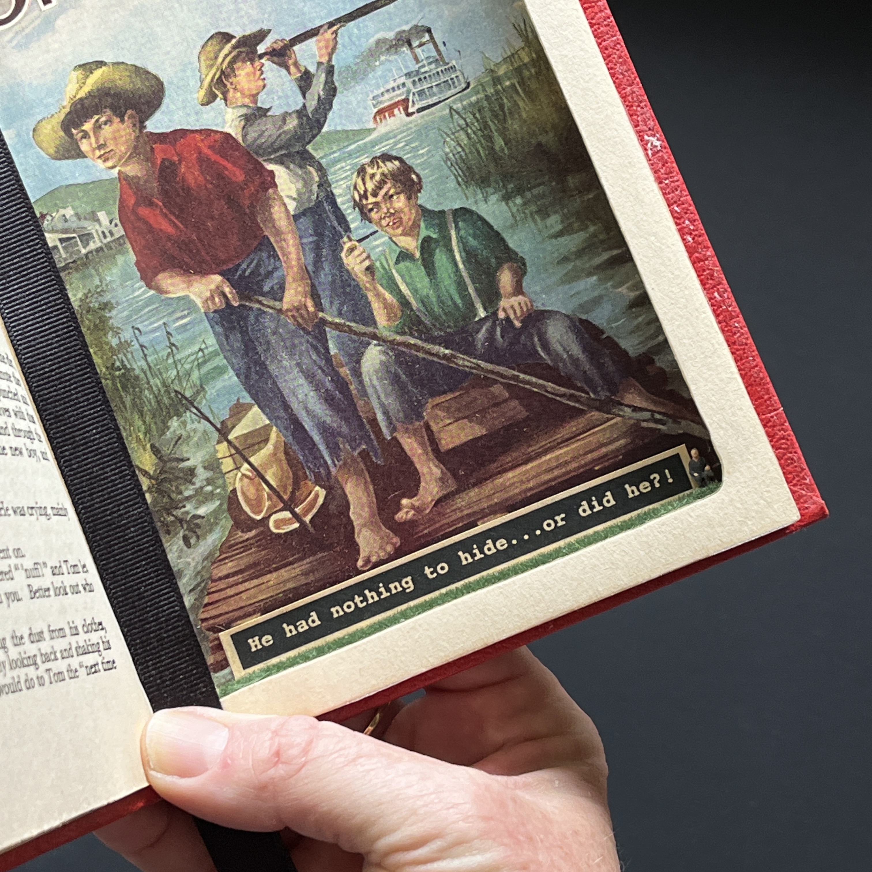 Every Foolhouse booksafe is lovingly carved and glued and enhanced by vintage ribbon bookmarks. Plus a vintage illustration has been specifically chosen to line the secret pocket. The secret message inside is devised by ourselves, inspired by the illustration on show and if well-known – an original quote. There’s even a meadow of faux grass and a wee miniature secret guardian that sneaks up on you and keeps your treasures safe!