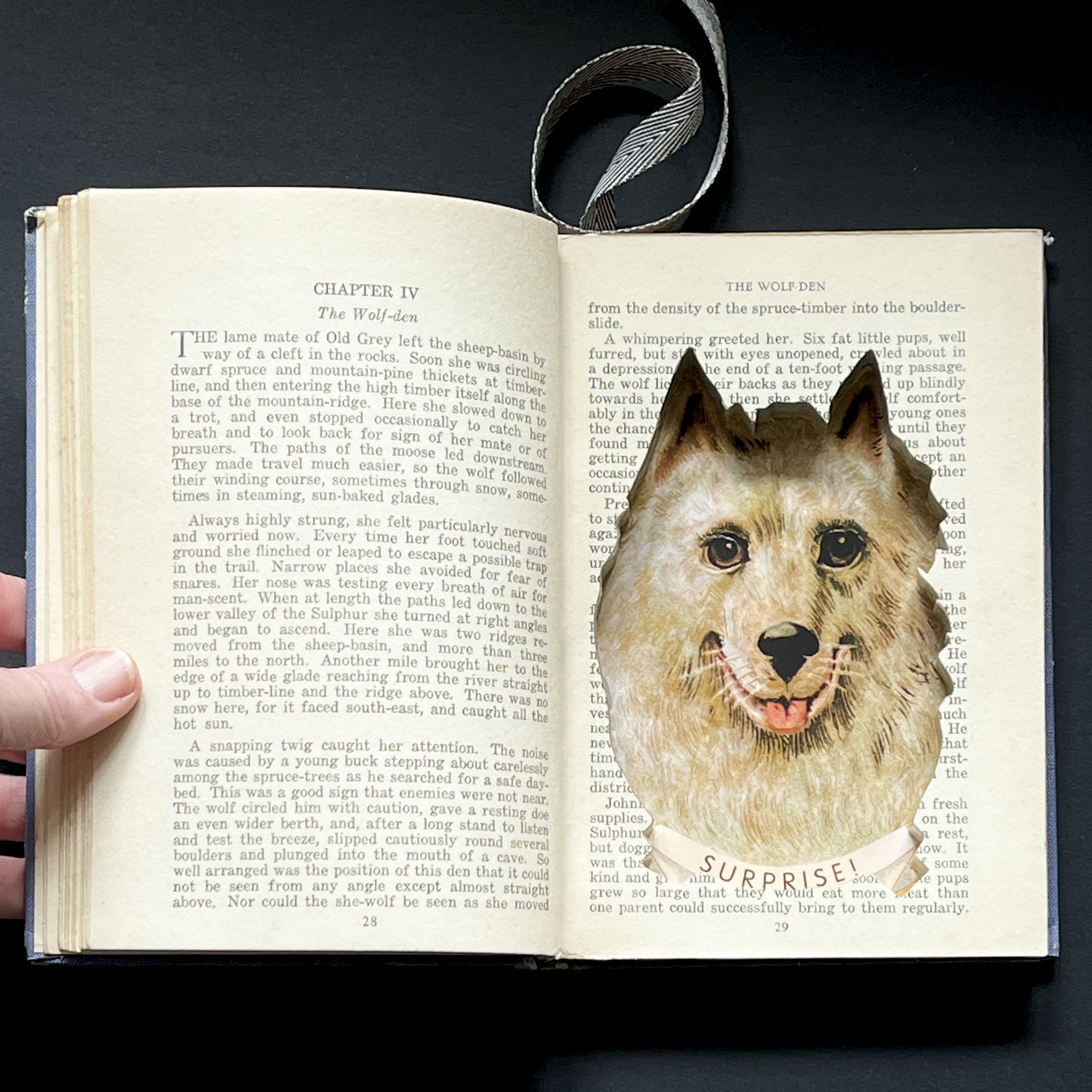 Every rescued Foolhouse booksafe is lovingly carved and glued and enhanced by vintage ribbon bookmarks. Plus a vintage illustration has been specifically chosen to line the secretly shaped pocket.